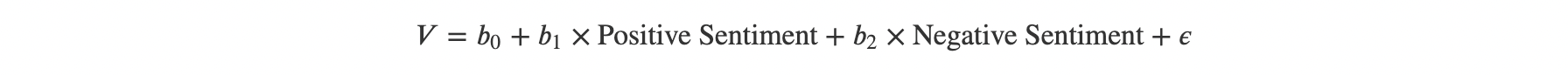 As the foundation for forecasting, Linear models are widely used in empirical finance due to their interpretability, simplicity, and ease of hypothesis testing. In our analysis, we employed linear regression models as our baseline approach to quantify the relationship between the sentiment scores derived from the text corpora of news and Bitcoin’s price volatility. Specifically, we constructed a series of ordinary least squares (OLS) regressions of the form: